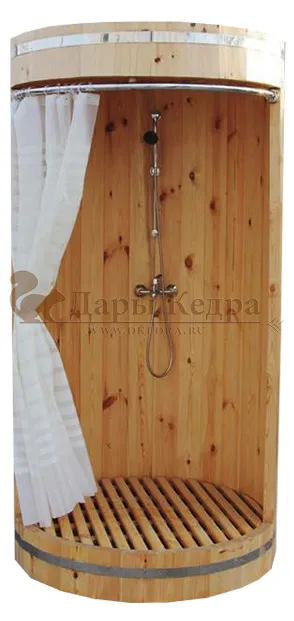 Душевая кабина круглая (овальная) открытого типа, лёгкая и изящная, впишется в любой интерьер и будет хорошо смотреться, как на улице так и в помещении. Круглая душевая кабина из кедра придаст презентабельный вид вашей ванной комнате или спа-салону.