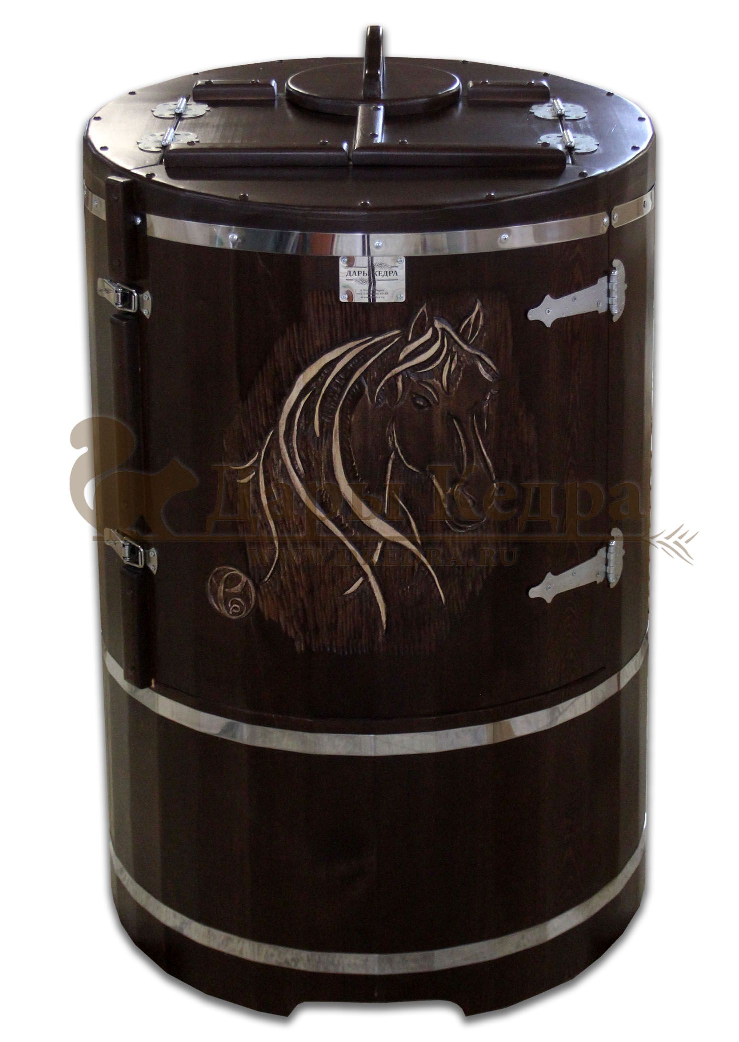 Кедровая бочка (фитобочка) двухместная «Люкс» Это двухместная модель фитобочки с эксклюзивной резьбой по нашим эскизам или вашим индивидуальным заказам. Выберете один из представленных ниже рисунков или подготовьте свой, и наши мастера перенесут его на изделие. Авторский рисунок на фитобочке придаст оригинальность салону красоты, подчеркнёт вашу индивидуальность и непревзойденный вкус. Художественная резьба это ручная работа, выполняется разными мастерами и каждый рисунок неповторим. Вы можете выбрать предложенные варианты резьбы или подобрать изображение и мы предложим вам подходящий эскиз. На сайте представлены наши работы в качестве примера. Каждая резьба рассчитывается индивидуально и может быть нанесена на любую модель фитобочки. Эксклюзивная фитобочка может быть представлена в разной цветовой гамме: После того, как цвет фитобочки выбран, необходимо определиться с вариантом резьбы (или предложить свой): Фитобочку можно также декорировать канатной веревкой в места обручей из нержавеющей стали (оплачивается дополнительно).