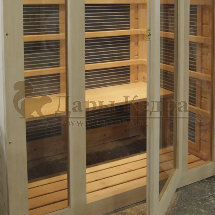 Инфракрасная сауна из кедра представляет собой кабинку с ик-нагревателями. Главное отличие такой кабины от финской парной или классической бани заключается в прогреве тела, а не воздуха. Внутренний прогрев тканей считается полезным и щадящим, за счет чего в инфракрасной кабине могут принимать лечебные процедуры даже дети и пожилые люди.
