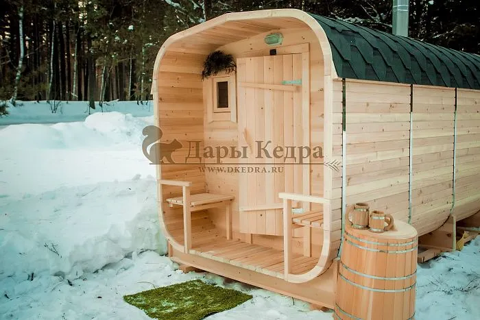 "Многие жалуются на небольшие размеры. Могу сказать в этом случае одно: тогда стройте сами полноценную баню из бруса, где места будет много, да и при этом денег и времени уйдет на строительство такой бани тоже в разы больше. Мобильная круглая парилка в этом случае решает одним махом все проблемы, связанные с долгим строительством и вложением средств. Если боитесь, что через 5-6 лет баня начнет гнить в пазах, то рекомендую приобрести баню разборного вида и далее каждую ламель пропитать антисептиком в местах соединения, либо это дело поручить за дополнительную плату производителю. Если баня будет пропитана в пазах, то могу сказать, она будет вечной, никакой грибок и гниль ей не страшны.  Конечно, такая баня требует тщательного ухода: проветривания, пропитки ежегодной внутри и при необходимости снаружи. Тогда она и выглядеть будет с годами, как новая. Тут не получится так, что купил, поставил и забыл, тут надо как с ребенком, - постоянно следить, ухаживать, тогда и плод этих трудов будет в радость.  По поводу сохранения тепла: форма бочки у бани позволяет максимально сконцентрировать тепло и не даст быстро выветриться ему даже в мороз".