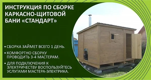 Затем можно приступать к финишным работам: установке планок на козырьке, дверных ручек на необходимой высоте, заглушек, подключению бани к электричеству. Монтаж электропроводки рекомендуем доверить специалисту в этой области.