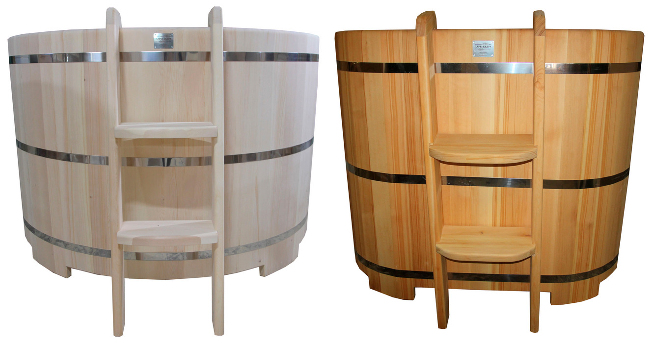 Приступок с двумя ступенями, позволит комфортно заходить в кедровую бочку и выходить из неё.