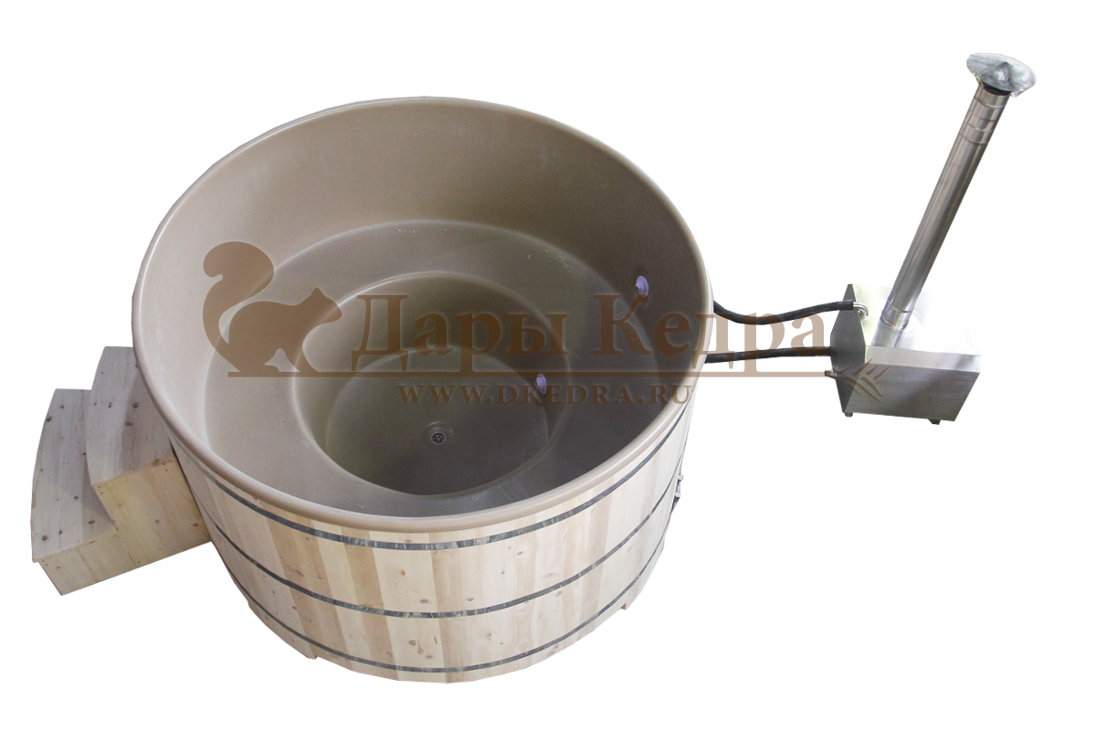 • Фурако круглая из кедра с термопластиковой вставкой со встроенной печью Это уличная подогреваемая купель с круглой внутренней чашей из термопластика. Для удобства пользования купель оборудована лавочками, приставной и внутренней лестницей. Нагрев воды происходит за счет встроенной печи, которая находится внутри купели за перегородкой. В комплектацию этой модели входит савок с длинной ручкой, который позволяет извлекать угли после эксплуатации изделия. Термопластик устойчив к воздействию температур, облегчает уход за купелью и увеличивает срок ее службы. Парение на свежем воздухе – это отличный способ укрепить здоровье и поддержать организм в тонусе.